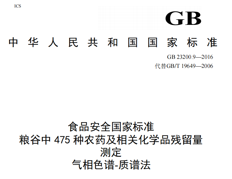 GB 23200.9-2016 粮谷中475种农药及相关化学品残留量的测定-气相色谱质谱法 更新日期:2022-12-30 下载包(1)